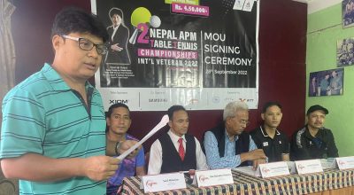 टेबल टेनिस खेल विकासको लागि नेपाल ए.पी.एम प्रालिले आगामी मंसीर १ देखि ३ सम्म काठमाण्डौमा दोस्रो नेपाल ए.पी.एम अन्तराष्ट्रिय भेटेरान