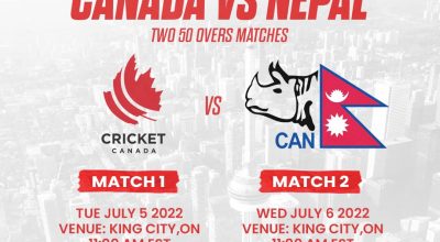 नेपाली राष्ट्रिय क्रिकेट टिम र क्यानडाबीच हुन लागेकाे दुई एकदिवसीय क्रिकेट श्रृंखलाको मिति एक दिन पर धकेलिएको छ । नेपाल क्रिकेट