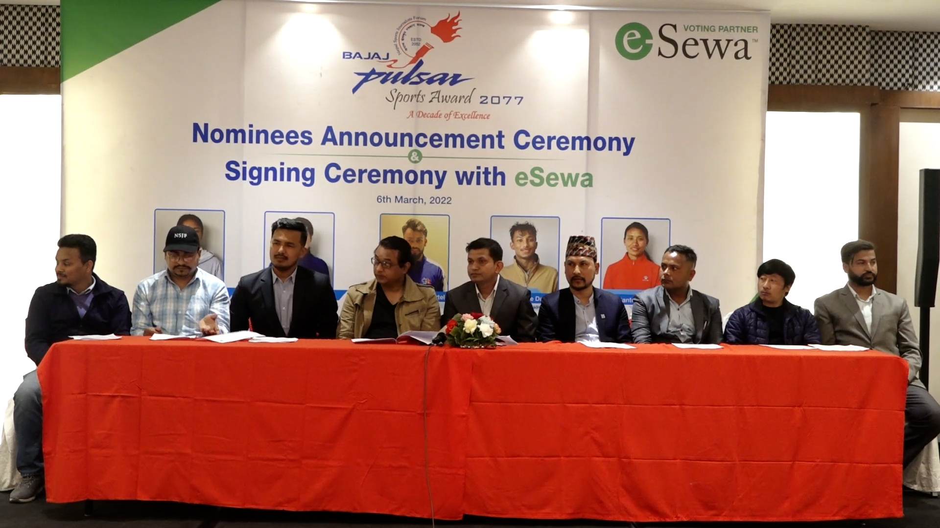 काठमाडौंमा आईतबार पत्रकार सम्मेलन गर्दै एनएसजेएफको खेलाडी छनोट समितिले मनोनयनमा परेका खेलाडीको नाम सार्वजनिक गरेको हो । मनोनयनमा पर्ने खेलाडीमा एथलेटिक्सकी सन्तोषी श्रेष्ठ, फुटबलकी एन्जिला तुम्बापो सुब्बा, टेबलटेनिसकी एलिना महर्जन, क्रिकेटका कुशल भुर्तेल र ब्याडमिन्टनका प्रिन्स दाहाल रहेका छन् । पिपल्स च्वाइस विधाका विजेता खेल पत्रकार, राष्ट्रिय प्रशिक्षक र समर्थकको भोटिङबाट चुनिने छन् । कार्यक्रममा मञ्चले स्पोर्ट्स अवार्डका लागि विद्युतीय भुक्तानी सेवा प्रदायक ईसेवासँग सम्झौता गरेको छ ।