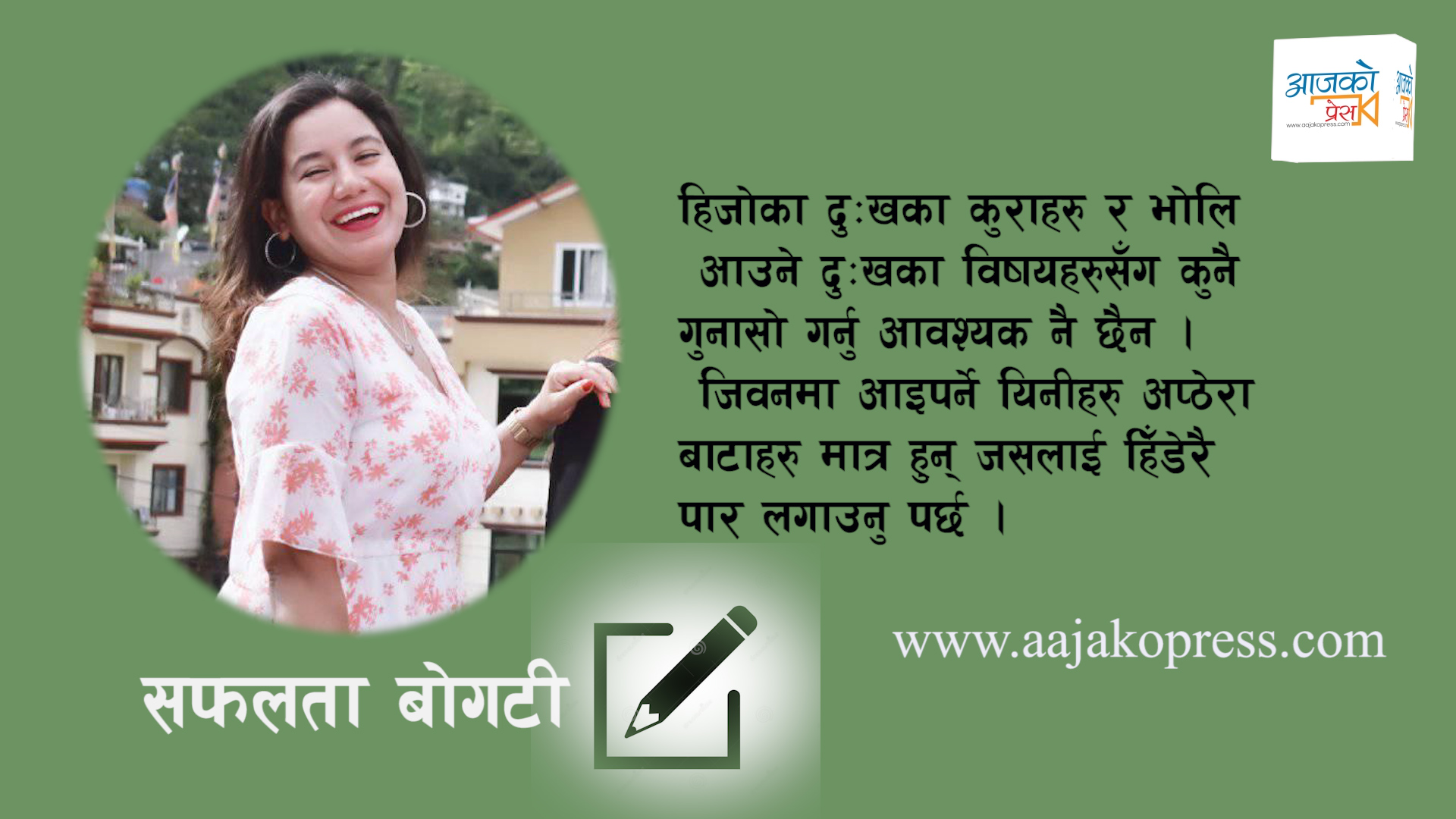 जिवनमा अनेकौ दुख कष्टहरु पलाउछन तर ति कहिल्यै पनि सिद्धिन्दैनन् । जिवनका जत्रासुकै खराब दुख कष्टहरुमा पनि आशाहरु चाहि मनग्ने पलाएका हुन्छन । जे होस सानै भए पनि आशाहरु पलाउँदछ । जिन्दगिका खराब दिनहरु कहिल्यै सिद्धिन्दैनन किनकि त्याहा त भरपर्दो आशाहरु उम्रिएका हुन्छन । अन्न वा वनस्पतिका विऊहरु हामीलाई माटो भित्र अध्यारोमा गाडीएको भनेर कहिल्यै निराश बन्दैन तर थोरै बाताबरण पाउन साथ ति विऊहरु उम्रिहाल्छन । अलिकति मौका पाउन साथ विऊले मुन्टो निकालि हाल्छ । तपाई हाम्रो जिन्दगिसंग पनि अनगन्ति विपरितहरु, कष्टहरु र दुखहरु स्थायी पाराले बस्न आएका हुदै होइनन् र बस्दैनन् पनि । तापक्रम बढ्न साथ विऊको मुना निस्कन्छ नै । जिन्दगि पनि अध्यारोमा बसुन्जेल मात्र विक्षिप्त बन्छ वा स्मरण गुम्छ । तर मुना बनेर बाहिर आउन थाले पछि त जिवन एउटा सत्तिशालको रुख जस्तै कसैलाई नटेर्ने वा सुमेरु पर्वत जस्तै सबैको बाटो छेकेर बस्छ ।