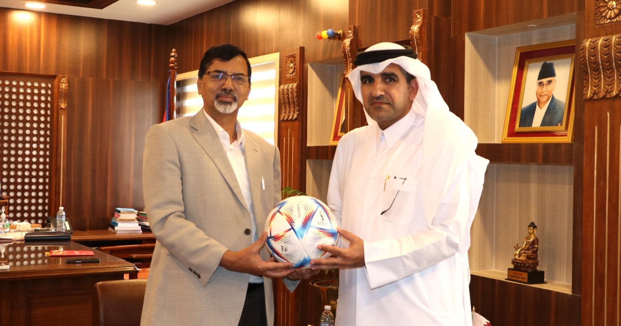 गठबन्धन सरकारका अर्थमन्त्री जनार्दन शर्मालाई कतार फिफा विश्वकप हेर्न नेपालका लागि कतारी राजदूत युसुफ बिन मोहम्मद अहमद अल हेलले आमन्त्रण गरेका छन् ।
