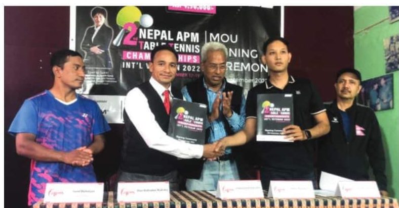 टेबल टेनिस खेल विकासको लागि नेपाल ए.पी.एम प्रालिले आगामी मंसीर १ देखि ३ सम्म काठमाण्डौमा दोस्रो नेपाल ए.पी.एम अन्तराष्ट्रिय भेटेरान टेबल टेनिस प्रतियोगिता आयोजना गर्न लागेको छ ।