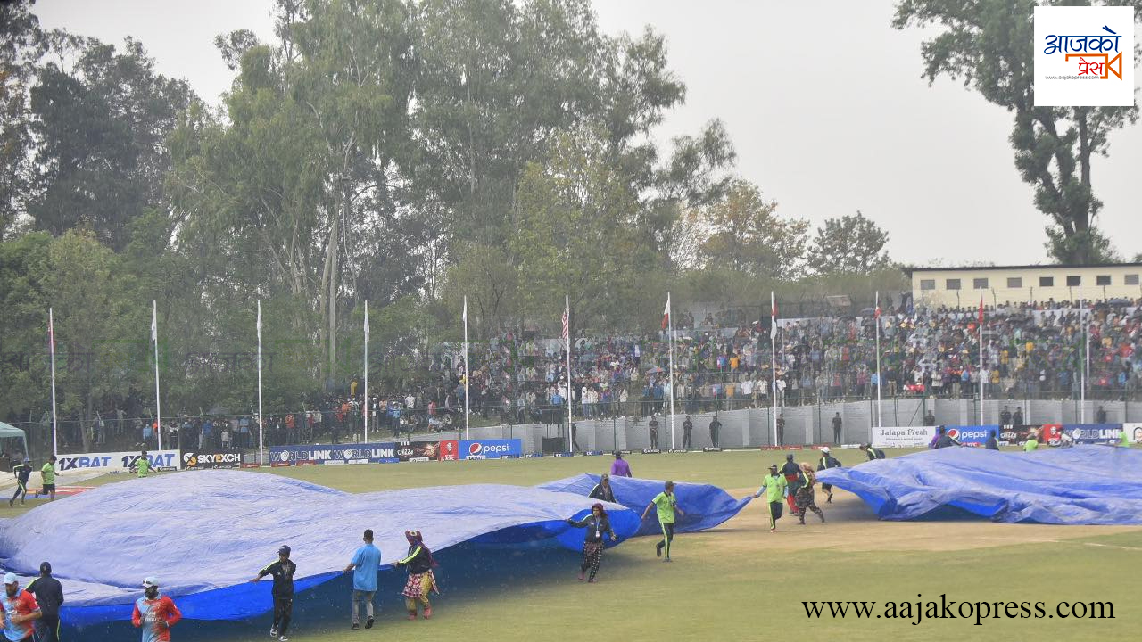 यसअघि नेपालले ब्याटिङ गर्दा पनि २३.२ ओभर ब्याटिङ गरेपछि खेल वर्षाका कारण स्थगित भएको थियो । त्यसपछि पानी पर्न छाडेपछि खेललाई ४२ ओभरमा घटाइएको थियो ।