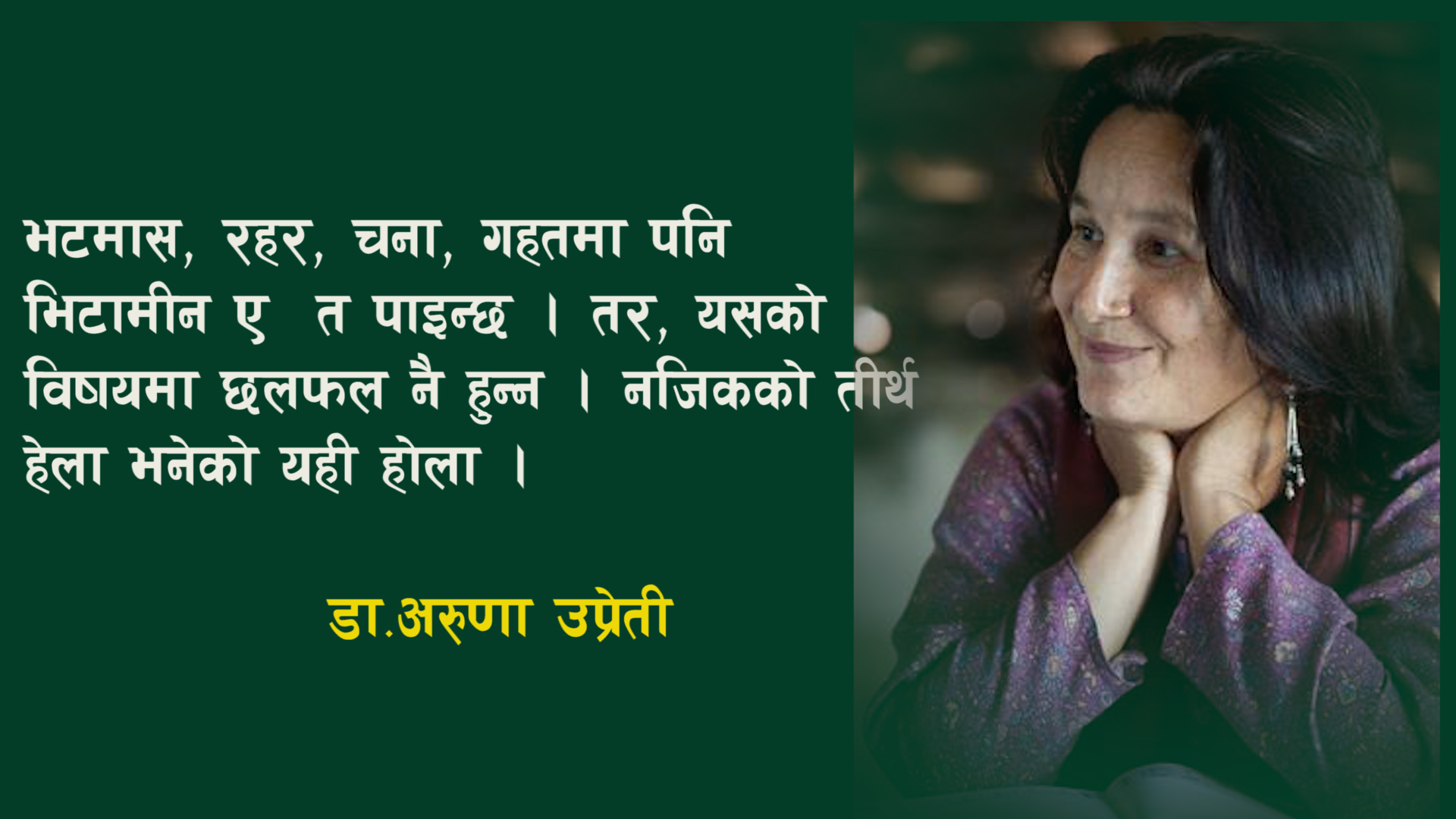 तर अपशोच भिटामीन क्याप्सुल दिदाँ, घर वरिपरी भएका यस्ता वस्तु खाउँ भनेर कसैले भन्दैन । “नजिकको तिर्थ हेला” भनेको यही होला । त्यसैगरी भटमास, रहर, चना, गहतमा पनि भिटामीन ‘ए’ त पाइन्छ । तर यसको विषयमा छलफल नै हुन्न । भिटामीन ‘ए’ को क्याप्सुल खाएपछि पहिले पहिले धेरै बच्चाको पहिले धेरै बच्चाको आँखाको स्वास्थ्यको सुरक्षा भएको छ । तर अब घर आगनमा पाइने भोजन प्रयोग गर्न नसिकाउने भन्या ।बर्सेनि अर्बौं लगानी तर कुपोषण समस्या उस्तै
